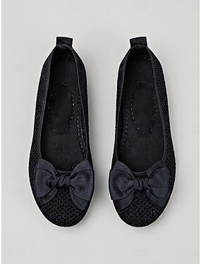 Sapatilhas femininas pretas de malha, respiráveis, com laço decorativo, confortáveis e casuais para o escritório e uso diário. & verão