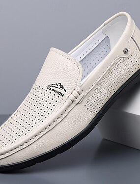 Mocassins masculinos brancos perfurados, modelo slip-on, respiráveis e casuais, ideais para uso diário, escritório, viagens, looks de fim de semana, estilo casual elegante de verão e confortáveis para caminhar.