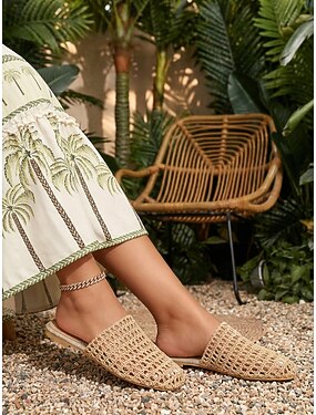 Sandálias femininas vermelhas de crochê, estilo mule, respiráveis e rasteiras, ideais para resorts ao ar livre e férias em destinos tropicais. &viagens de verão para a praia