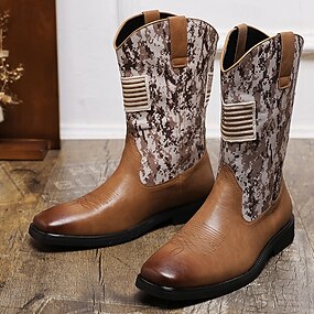 Homens Botas Botas Cowboy Retro Caminhada Vintage Casual Ao ar livre Diário Pele PU Confortável Antiderrapante Respirável Botas Cano Médio Sem Atacadores Preto Marron Côr Camuflagem Primavera Outono