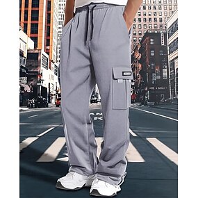 Homens Calças Cargo Calças Com Cordão Cintura elástica Bolso multi Tecido Vestível Ao ar livre Diário Acampar e Caminhar Moda Clássico Preto Cinza Claro