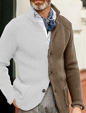 Homens Sueter Cardigan Cardigã Chunky Tricotar Túnica Abotoar Tecido Xale Aquecimento Contemporâneo Moderno Casual Roupa Diária Roupa Outono Inverno Preto Marron M L XL