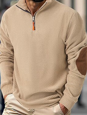 Homens Moletom Moletom Polo Preto Azul Marinha Marron Cáqui Cinza Claro Colarinho Clerical Tecido Textura Desportos e Ar livre Casual Diário Roupa de rua Legal Roupa de Esporte Primavera & Outono