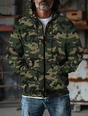 Homens Moletom Full Zip Hoodie Moletom camuflado camuflagem verde Com Capuz Côr Camuflagem Zíper Bolsos Desportos e Ar livre Casual Diário Roupa de rua Legal Roupa de Esporte Primavera & Outono Roupa