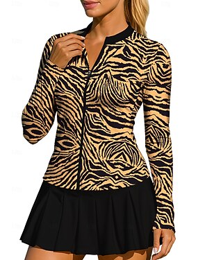 Mulheres Animal Leopardo Tops Camisa Esportiva Camisa de tênis Top de tênis Manga Longa Zíper Floral UPF50+ Resistente a UV Elasticidade Alta Pavio Humido Respirável Voleibal Tênis Golfe Arredondar