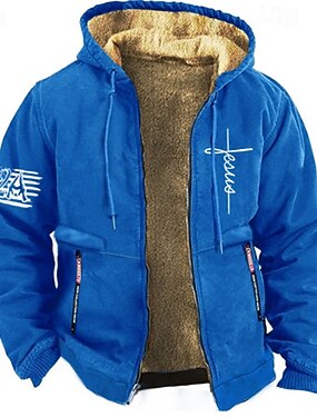 Homens Full Zip Hoodie Casaco de lã Moletom de lã Preto Branco Verde Tropa Azul Marinha Marron Colarinho Clerical Cruz Bandeira americana Fé Bolsos Detalhes em couro sintético Desportos e Ar livre