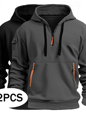 Homens Moletom Quarter Zipper Hoodie Preto Rosa Vinho Azul Verde Com Capuz Bandeiras Com Cordão Bolsos Desportos e Ar livre Diário Feriado Roupa de rua Básico Casual Primavera Outono Roupa Moletons