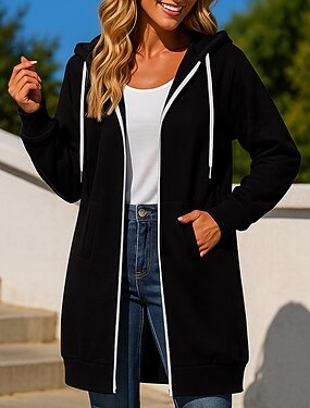 Mulheres Riscas Moletom com capuz Tops casuais Outono Manga Longa Roupa Esportiva Da Moda Exterior Viagem Preto Branco Vermelho Roupa de esporte Roupas Esportivas