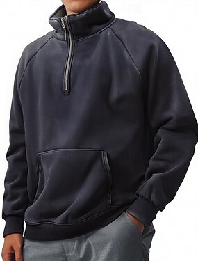 Homens Moletom Moletom de lã Moletom com zíper Preto Verde Cinzento Meio Zíper Tecido Bolsos Quarter Zip Desportos e Ar livre Diário Feriado Poliéster Roupa de rua Básico Casual Outono Inverno Roupa