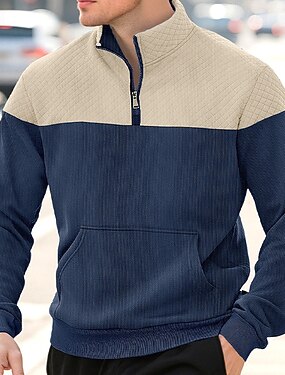 Homens Moletom Moletom com capuz Quarter Zipper Hoodie Adamascado Preto Azul Real Cáqui Cinza Claro Com Capuz Tecido Patchwork Bloco de cor Desportos e Ar livre Casual Diário Roupa de rua Legal Roupa