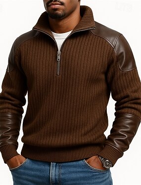 Homens Moletom Estacionar Moletom com zíper Malha canelada Marron Colarinho Clerical Tecido Patchwork Desportos e Ar livre Casual Diário Roupa de rua Legal Roupa de Esporte Primavera & Outono Outono