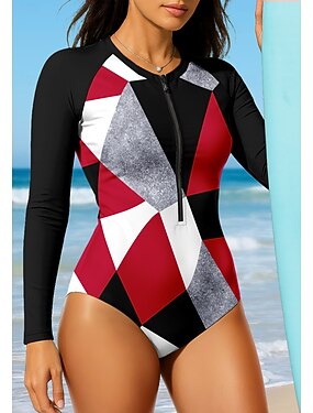 Mulheres Padrão Normal Anti Atrito Geometria UPF50+ Proteção UV Secagem Rápida Manga Longa Body Camisa de Natação Surfe Canoagem Praia Verão