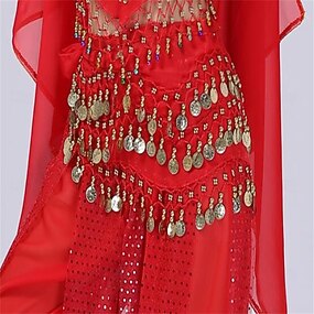 Cinto de dança, lenço de quadril para dança do ventre com 3 fileiras de moedas de ouro para performance & prática