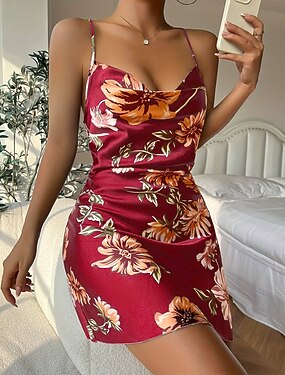 Mulheres Loungewear Camisola Sensual Casual Macia Floral Franzido Frente Única Vestidos Casa Férias Sem Manga Decote V Preto Vermelho Verde Verão Primavera Normal