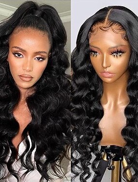 Cabelo Humano 13x4 Lace Front Peruca Parte livre Cabelo Brasileiro Ondulado Onda de Água Preta Natural Peruca 180% 250% Densidade do Cabelo com o cabelo do bebê 100% Virgem Sem cola Pré-depenado Para