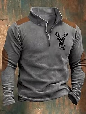Homens Moletom Moletom com capuz Estacionar Moletom com zíper Moletom de caça Branco Azul Marron Cáqui Café Colarinho Clerical Animal Tecido Patchwork Desportos e Ar livre Casual Diário Roupa de rua
