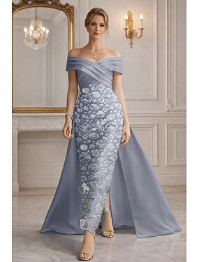 Tubinho Longo Vestido formal Vestido de noite Vestido de capa Elegante Estilo Celebridade Manga Curta Ombro a Ombro Casamento Formal Crepe Esticado com Franzido Fru-Fru