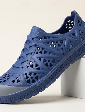 Tênis masculino azul vazado, casual, leve e respirável, com cadarço, ideal para caminhada, uso diário, viagens, lazer ao ar livre, praia e estilo urbano.