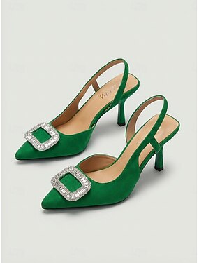 Sandálias femininas verdes de salto alto com fivela de strass - perfeitas para festas em resorts. &eventos de coquetel