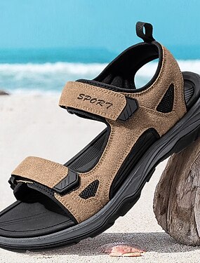 Tênis masculino com tira de velcro na cor bege, cabedal respirável e sola flexível – calçados confortáveis e estilosos para uso casual e atividades ao ar livre