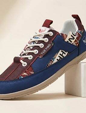 Tênis masculino azul patchwork casual com cadarço, leve e confortável para caminhada, ideal para uso diário, viagens, looks urbanos, fins de semana, atividades ao ar livre e um estilo casual moderno.