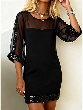 Mulheres Vestido Longo Vestido da bainha Elegante Aniversário Formal Côr Sólida Manga 3/4 Gola Redonda Preto