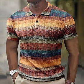Homens Xadrez Camisas Polo Waffle Camisa de golfe Manga Curta Camisas polo Camisas de colarinho Vintage Casual Roupas de férias Traje formal Roupas para festivais Impressão 3D Botões Azul Amarelo Roxo