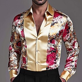 Homens Estampa floral Rosa Flores Camisa Social Blusa de cetim Saia Manga Longa Vintage retrô Férias Dia a Dia Verão Primavera Outono Aberto para a Lateral Impressão 3D Camisas de botões Amarelo Azul