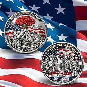 Moeda comemorativa do Dia das Veteranas, em homenagem ao serviço militar feminino e à coragem. &Sacrifício, medalha colecionável patriótica, presente inspirador para a celebração de 12 de junho
