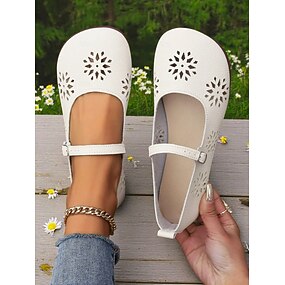 Sapatilhas femininas Mary Jane confortáveis, bico largo e com recortes florais – sapatos casuais descalços com sola macia para mulheres – ótimos para brunch, mercados de produtores e lazer ao ar livre