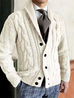 Homens Sueter Cardigan Estriado Tricotar Cropped Tricotado Colarinho Clerical Aquecimento Contemporâneo Moderno Roupa Diária Para Noite Roupa Primavera & Outono Preto Branco M L XL