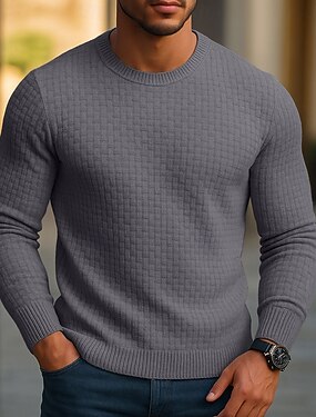 Homens Pulôver suéter Suéter de malha Estriado Tricotar Tops regulares Tricotado Tecido Gola Redonda Moda Básico Férias Roupa Diária Roupa Outono Inverno Preto Branco S M L