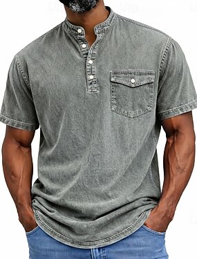 Homens Camiseta Camisa Henley Camisa 100% algodão com lavagem ácida T-shirt Manga Curta Tecido Vintage Roupa de rua Casual Bolsos Desaparecido Lavado Henley Casual Casa Rua Verão Primavera Todas as
