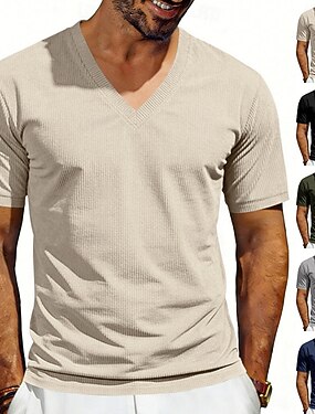 Homens Camiseta Camiseta de Veludo Camisa de manga curta T-shirt Manga Curta Decote V Verão Primavera Tecido Roupa de rua à moda Casual Jacquard Diário Ao ar livre Férias Preto Azul Marinha Caqui Top