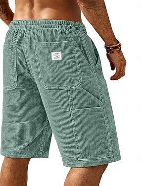 Homens Calção Shorts de verão Shorts casuais Shorts de veludo cotelê Bolsos Cintura elástica Tecido Conforto Respirável Comprimento do joelho Diário Ao ar livre Streetwear Férias Moda Azul Preto