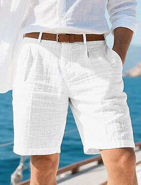 Homens Calção Shorts de linho Shorts de verão Shorts de praia Bolsos Tecido Conforto Respirável Curto Férias Feriado Praia Havaiana Boho Preto Branco