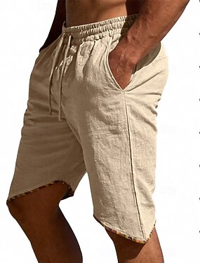 Homens Social Shorts de algodão e linho Botões Bolsos Tecido Conforto Respirável Férias Diário Boho Preto Branco
