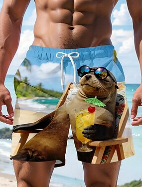 Homens Tartaruga Criaturas marinhas Calção Shorts de praia Calções de algodão Cintura Média Havaiana Casual Diário Praia Feriado Bolsos laterais Cintura elástica com cordão Designer Roupa