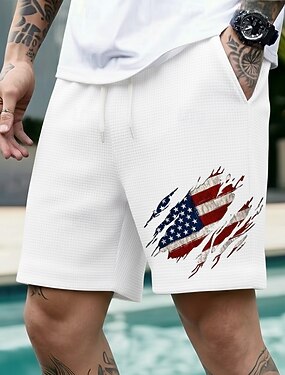 Homens 4 de julho - 250º aniversário dos EUA Bandeira dos EUA Calções Waffle Shorts casuais Shorts texturizados Cintura Média Patriótico Feriado Cintura elástica com cordão Shorts com bolsos Designer