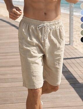 Homens Calção Shorts de linho Shorts sociais Shorts de verão Bolsos Tecido Conforto Macio Ao ar livre Diário Para Noite Moda Casual Preto Azul