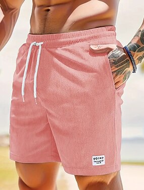 Homens Calção Shorts casuais Shorts de veludo cotelê Bolsos Cintura elástica Tecido Cor Única Conforto Respirável Acima do Joelho Casual Ao ar livre Praia Férias Moda Preto Rosa Micro-Elástica