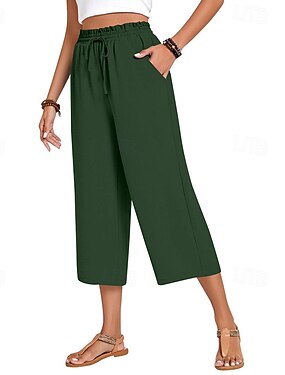 Mulheres Calças Capri Linho de algodão sintético Perna larga chinês Férias Roupa de rua Casual Comprimento total Cintura Média Tecido Bolsos Cintura elástica Respirável Micro-Elástica Diário Ao ar