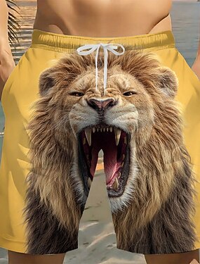 Homens 3D impressão Desenhos 3D Cara brava Shorts de Natação Bermuda de Surf Calção de Banho Cintura Média Havaiana Engraçado férias na praia Com Cordão com forro de malha Cintura elástica Designer