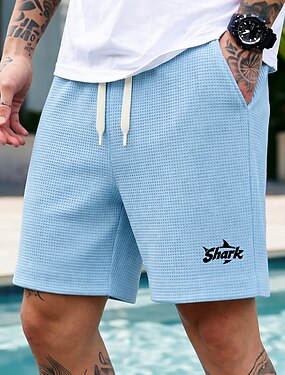 Homens Tubarão impressão de carta Calções Waffle Shorts casuais Shorts texturizados Cintura Média Moda Casual Diário Férias Cintura elástica com cordão Shorts com bolsos Designer Roupa