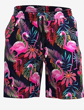 Homens Flamingo Plantas Tropicais Calção Justo de Natação Shorts de Natação Bermuda de Surf Cintura Média Roupa de rua Havaiana Casual Feriado férias na praia Bolsos Com Cordão Cintura elástica