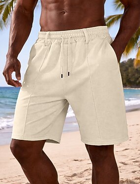 Homens Calção Shorts de linho Shorts de verão Com Cordão Cintura elástica Perna reta Tecido Conforto Respirável Acima do Joelho Casual Diário Feriado Moda Estilo Clássico Preto Branco
