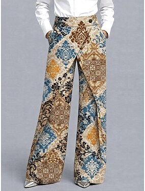 Mulheres Shorts de algodão e linho Perna larga chinês Férias Vintage estilo avó costeira Comprimento total Cintura Média Gráfico Estampado Cashemere Abstrato Imprimir Conforto Sem Elasticidade Diário