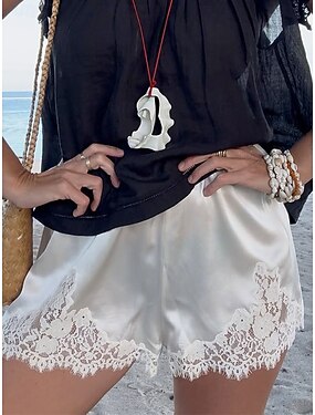 Mulheres Atrevido chinês Calção Elegante Férias Vintage Curto Cintura Média Côr Sólida Renda Patchwork Cintura elástica Confortável Respirabilidade Sem Elasticidade Diário Ao ar livre Férias Azul