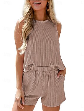 Mulheres Conjuntos de duas peças Colete Camis Sem Manga Gola Redonda Tecido Moda Roupa de rua Casual Diário Ao ar livre Verde Claro Rosa Rosa Escuro Verão Normal