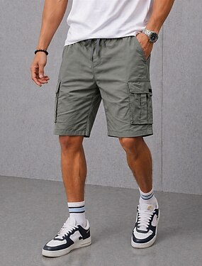 Homens Calças de carga Bermuda Cargo Calção Shorts casuais Bolsos Cintura elástica Tecido Cor Única Comprimento do joelho Casual Ao ar livre Streetwear Moda Roupa de rua Cinzento Sem Elasticidade